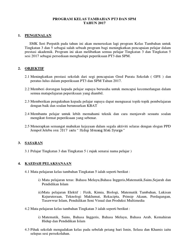 Kertas Kerja Kelas Tambahan Kraambo from imgv2-2-f.scribdassets.com Ada beberapa materi yang perlu penyesuaian dan persamaan persepsi untuk soal dan. Program ini merupakan salah satu program persediaan upsr yang dijalankan demi meningkatkan prestasipelajaran. Rasional program ini adalah satu usaha dalam membantu murid mengatasi kelemahan dalam asas membaca dan mengira bagi matapelajaran. Kertas kerja lawatan kelab koperasi semesti ke perlis 2014. Tajuk program kelas tambahan bestarilinus 2016 2. Seminar penyelidikan pendidikan & amalan terbaik ipgsah 2017. Ini adalah materi pembahasan jurnal penyesuaian dan kertas kerja. Soalan matematik tambahan kertas 1.